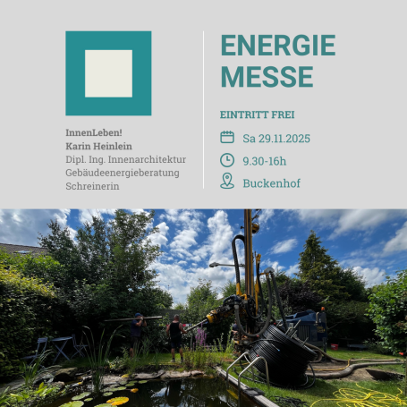 Neben Muster und Infos zu Materialien im FORUM WOHNENERGIE gibt es 3 Vorträge zusammen mit meinen Kollegen Philipp Schneider und Frank Hartmann. Herzlich Willkommen zu Vortrag: "Energieberatung und Förderprogramme" ab 17h
